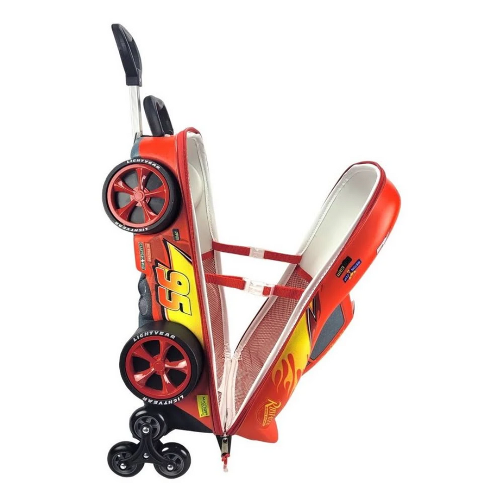 Se o seu pequeno adora velocidade, essa mochila vai fazer sucesso! Além de espaçosa, ela conta com rodinhas resistentes, alças confortáveis e o design 3D exclusivo do Relâmpago McQueen, tornando qualquer passeio uma verdadeira corrida.