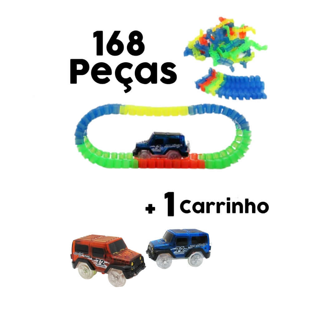 O Super Cart ativa a imaginação com uma pista desmontável, que pode personaliza-la da forma que quiser, misturando cores e desenvolvendo pistas diferentes, para que o carrinho faça curvas incrivelmente radicais.