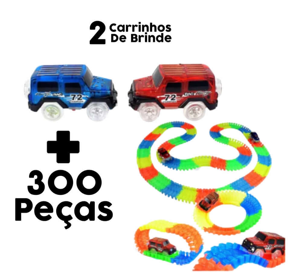 Os carros possuem luzes em LED e as pistas são fosforescentes dando um aspecto mágico à corrida. |